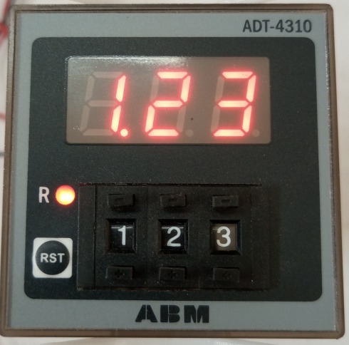 ADT-4310" are digital presettable timers used for industrial automation, not traditional thumbwheel counters. The "ADT" prefix is a brand name used by some manufacturers, such as Alfa Instruments and ABM Instrument.
